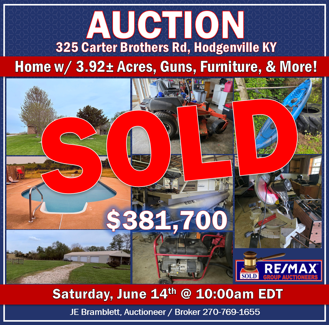 Jun 03 Love1 Auction | 2053± sqft Home w/ Full basement, In-Ground Pool ,& Personal Property in Hodgenville | Saturday, June 14th, 2025 @ 10:00 am EDT By Bramblett JE Past Auctions | Featured, Past Auctions Auction 2053± sqft Home w/ Full basement, In-Ground Pool ,& Personal Property Saturday, June 14th, 2025 @ 10:00 am EDT...Read More
