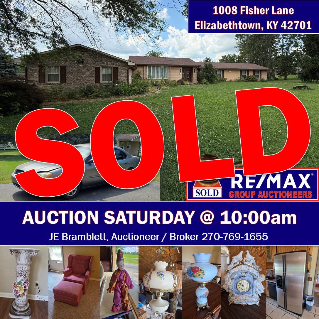 Jun 16 Love0 Auction | Custom-Built Home w/ Antiques & Furniture in Elizabethtown | Saturday, August 23rd, 2025 @ 10:00 am EDT By Bramblett JE Past Auctions | Featured, Past Auctions Auction Custom-Built Home w/ Antiques & Furniture Saturday, August 23rd, 2025 @ 10:00 am EDT 1008 Fisher Lane Elizabethtown KY...Read More