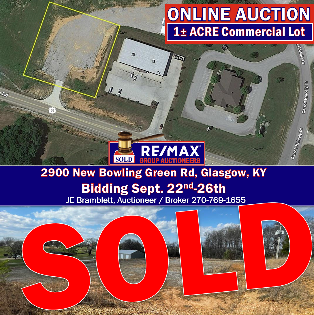 Aug 13 Love0 ONLINE Auction | Commercial Lot in Glasgow KY | Bidding: September 22nd-26th By Bramblett JE Past Auctions | Featured, Past Auctions Online Auction Bidding Begins on September 22nd @ 12:00PM Bidding Ends on September 26th RE/MAX Group Auctioneers is presenting an...Read More