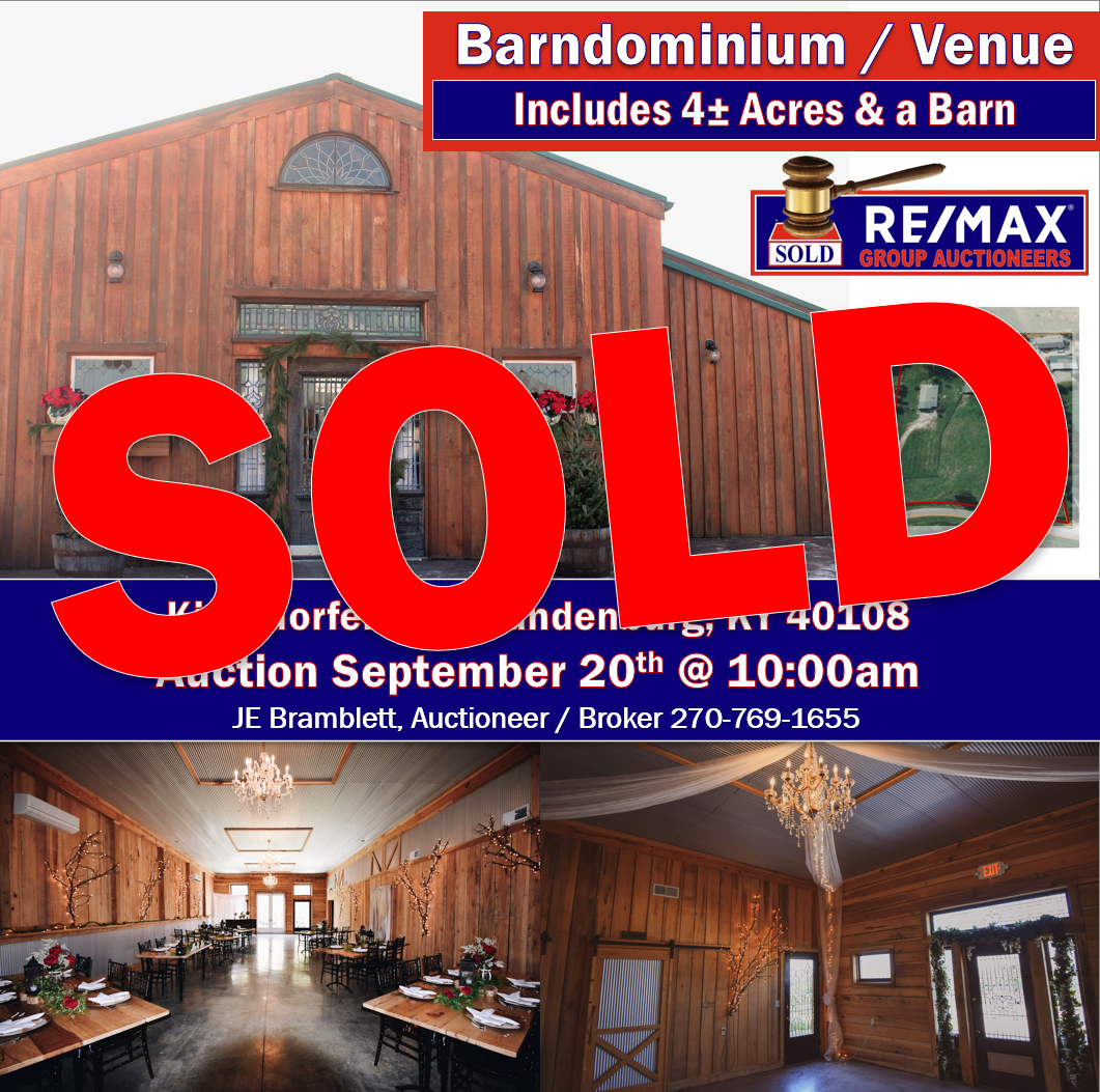 Jun 16 Love0 Absolute Auction | Barndominium / Venue Hall & 3.7± Acres in Brandenburg | September 20th, 2025 10:00am EDT By Bramblett JE Past Auctions | Featured, Past Auctions, Past Auctions | Farm & Land Auction Barndominium / Event Venue w/ 3.7± Acres 325 Kirchdorfer Rd, Brandenburg, KY 40108 September 20th, 2025 10:00am EDT RE/MAX...Read More