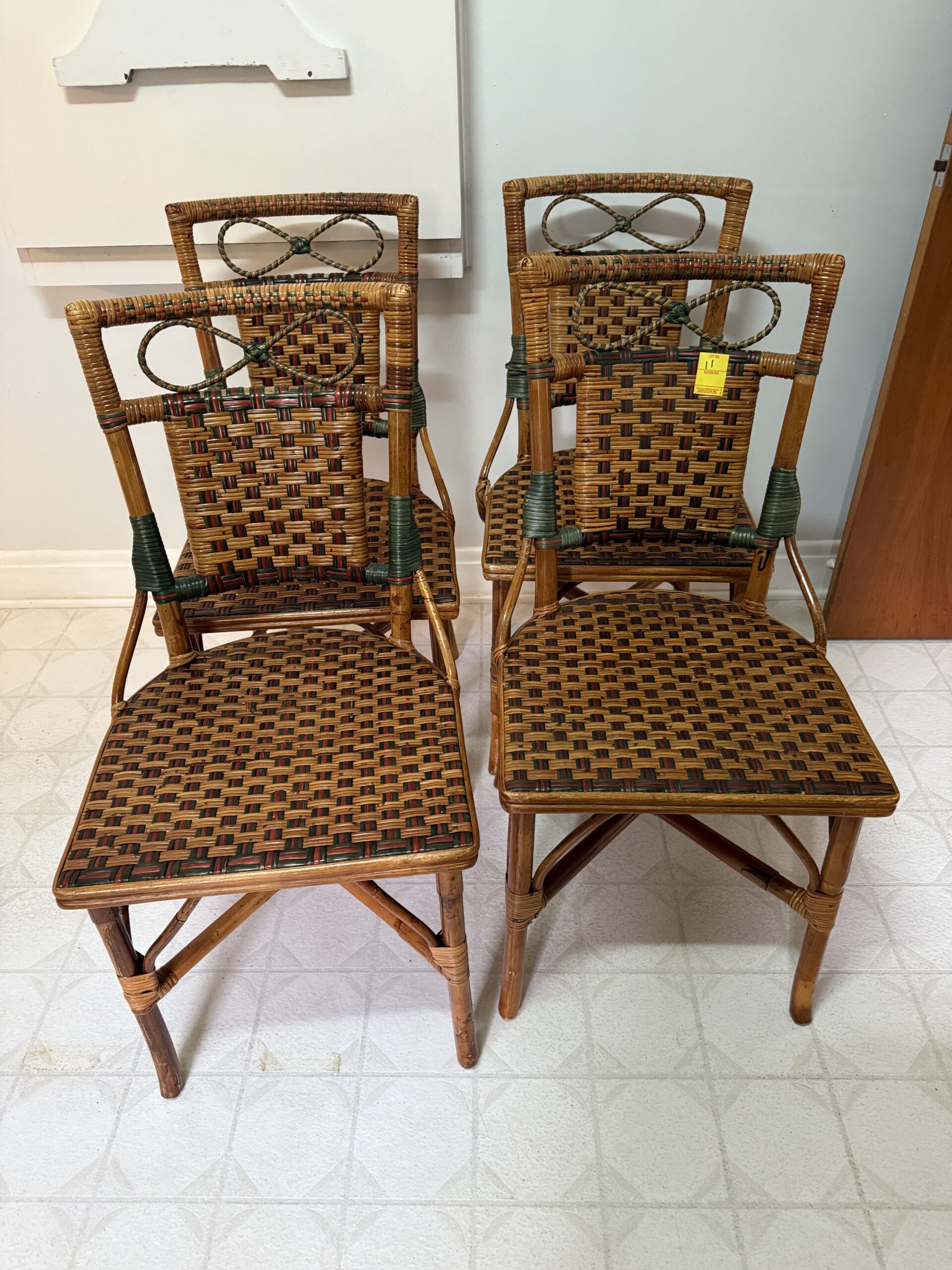 LOT 11. RATAN PALECEK WIKER / BAMBOO CHAIRS (4)