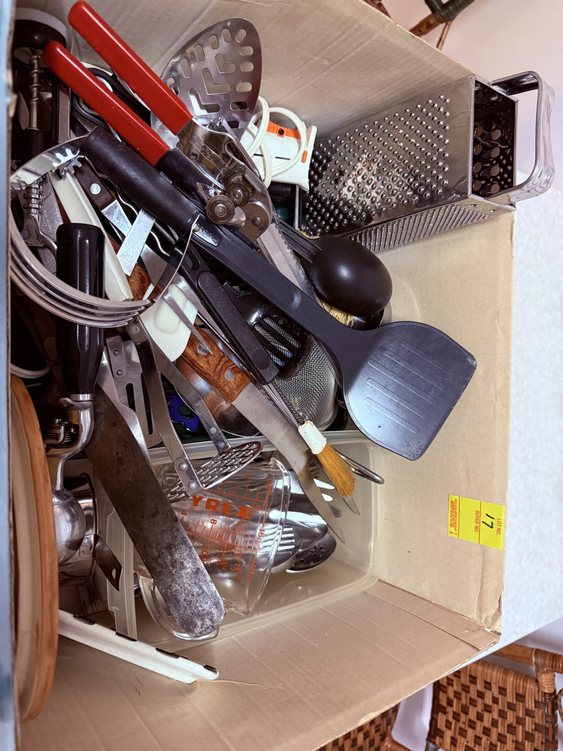LOT 17. BOX OF MISC. KITCHEN UTENSILS