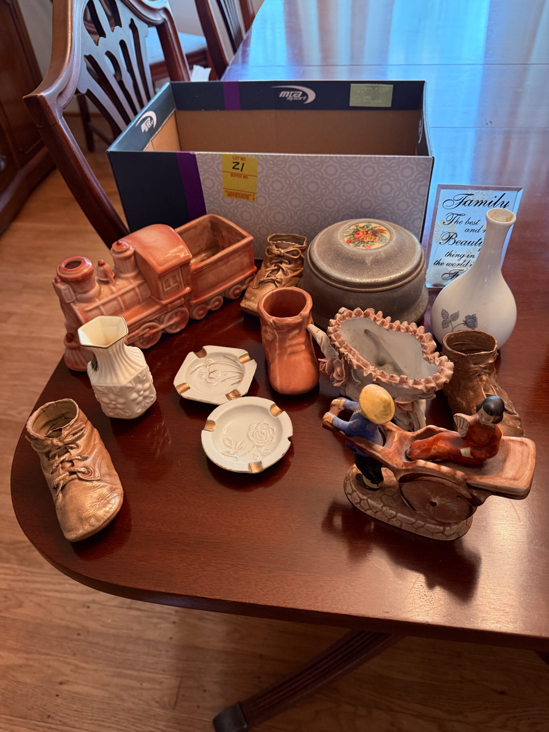 LOT 21. BOX OF VINTAGE COLLECTIBLES AND TABLEWARE