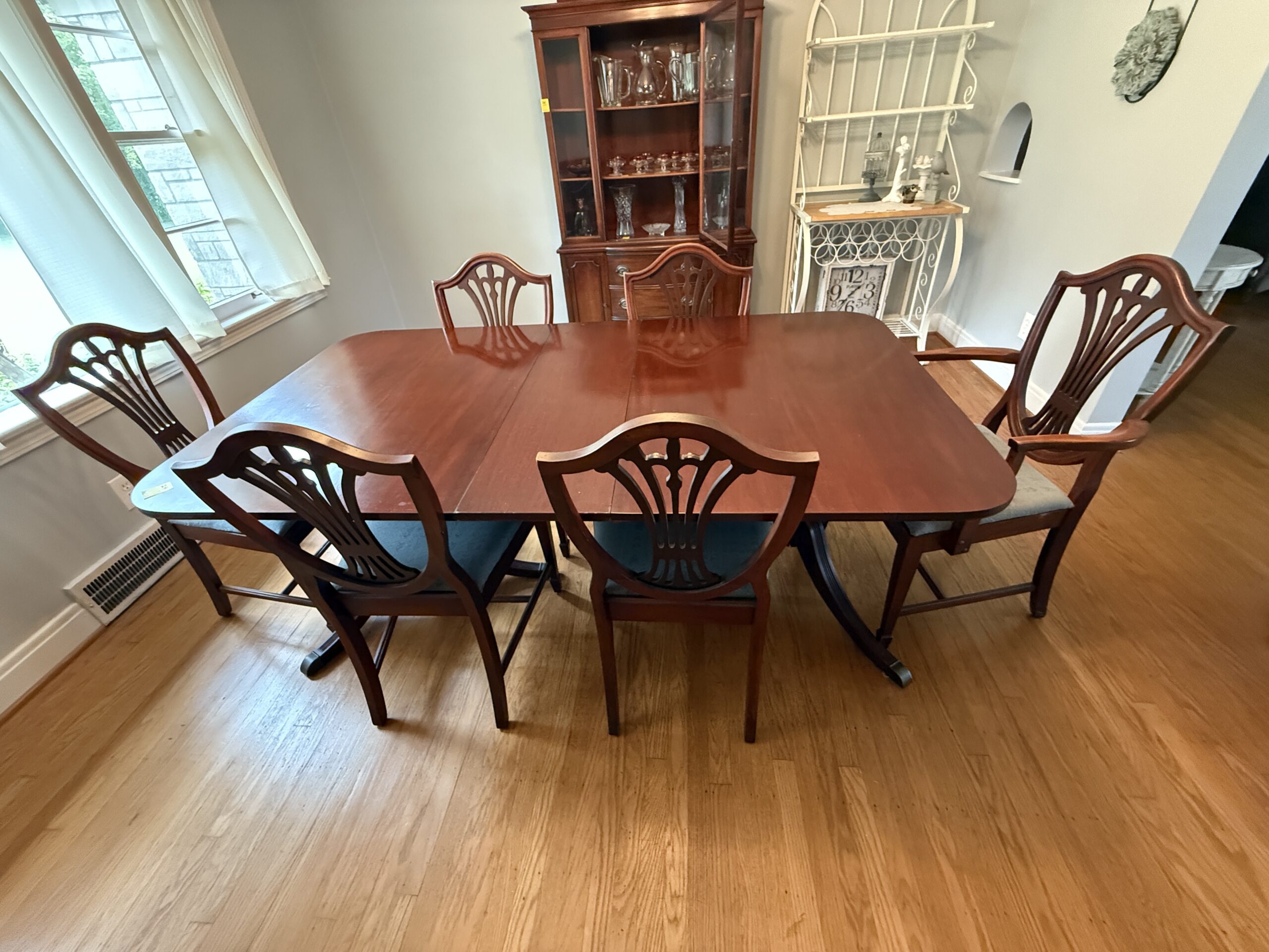LOT 24. BERNHARDT DUNCAN PHYFE MAHOGANY DINING ROOM TABLE & CHAIRS