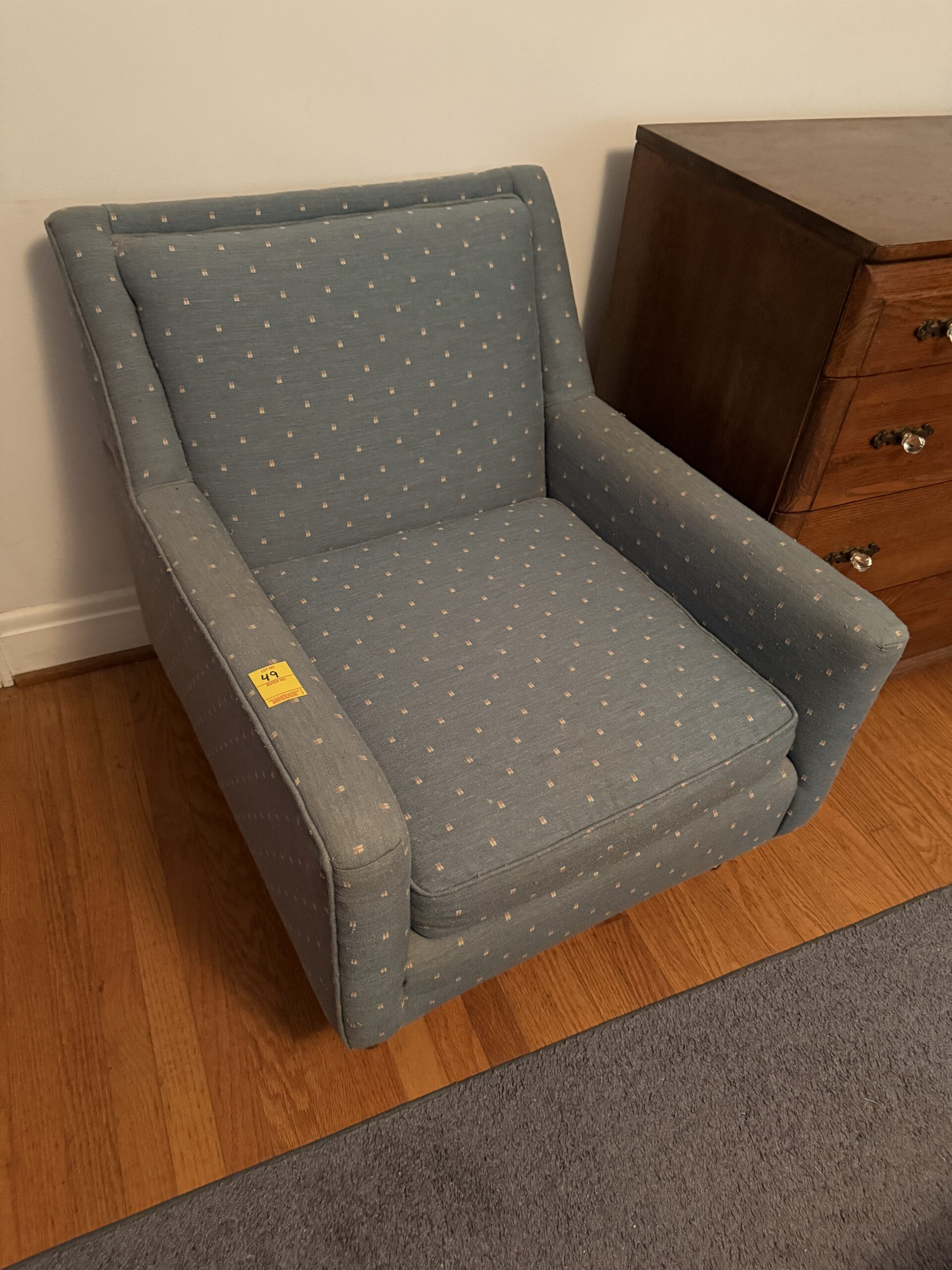 LOT 49. BLUE FLORAL DOT ARM CHAIR