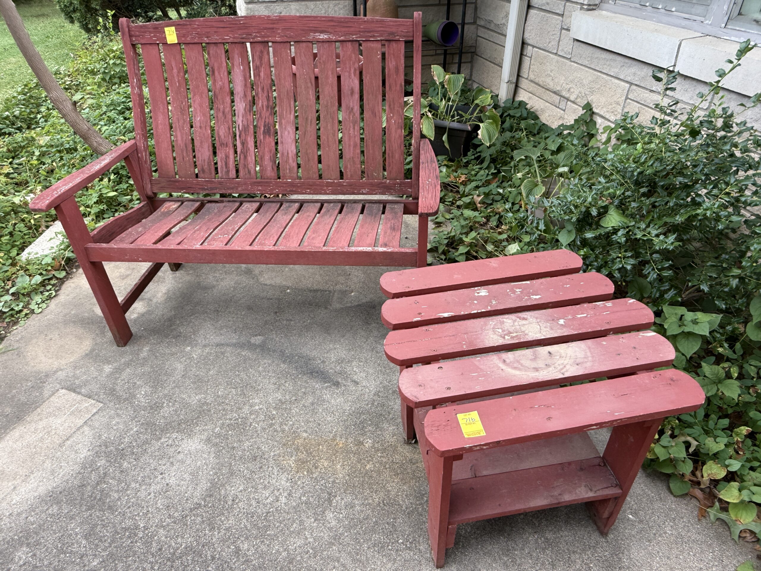 LOT 71. WOODEN LOVESEAT AND TABLE