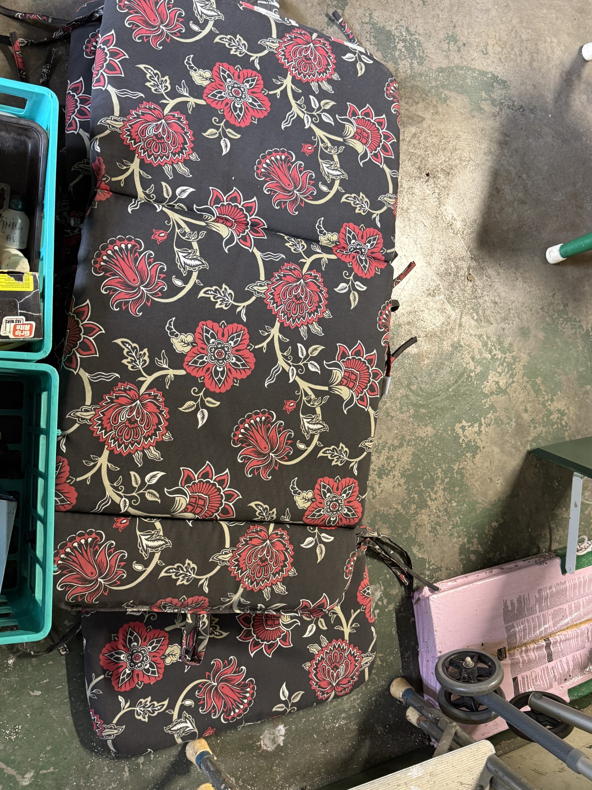LOT 6. RED CLOTH LIFT CHAIR, IN GOOD WORKING ORDER